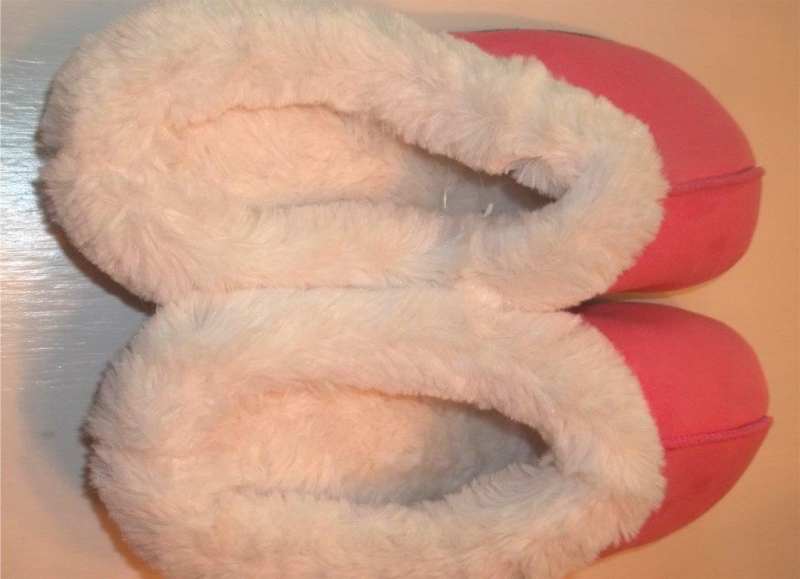 Pink slippers LADIES DEARFOAM SLIPPERS SIZE M (7-8) NEW W/O TAGS OR BOX Bright and happy, warm and cozy are the words to describe these pretty pink DEARFOAM slippers! They are like new and appear to have never been worn. Pretty suede like pink outside with soft and warm white furry lining. Nice rubber soles which allow for outside wear, too. Size M which states it is 7-8. You will love these slippers!
